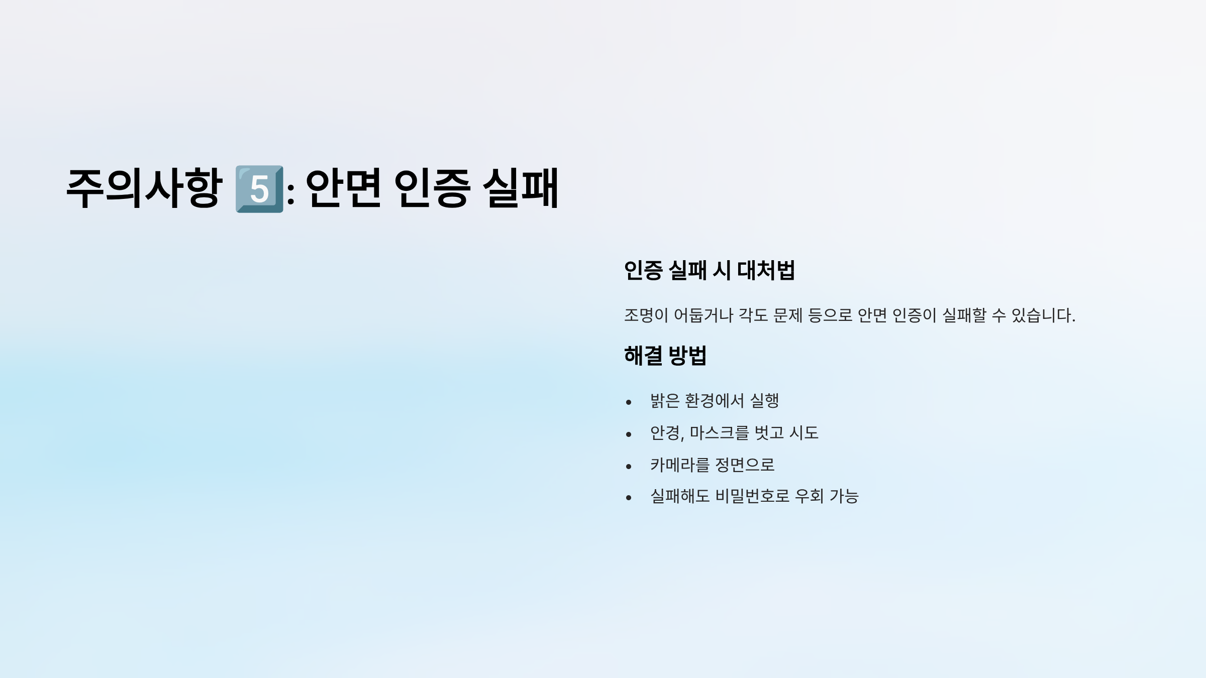 주의사항 5️⃣: 안면 인증이 실패할 수 있음
