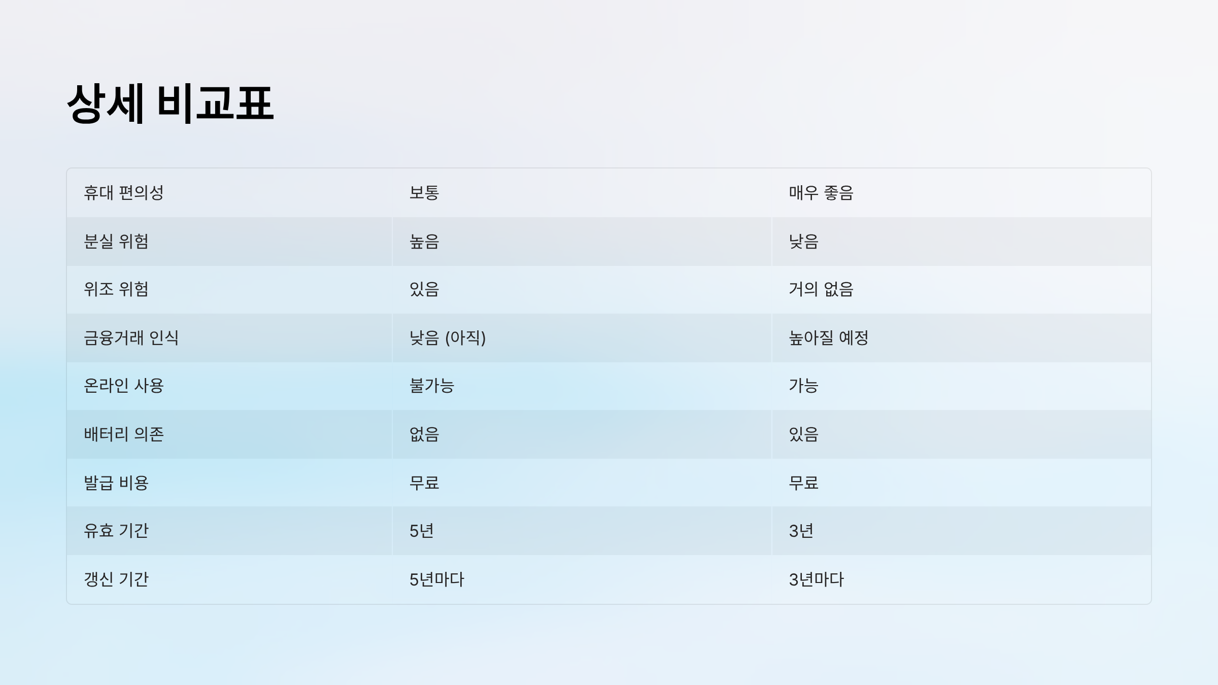 | 위조 위험 | 있음 | 거의 없음 |