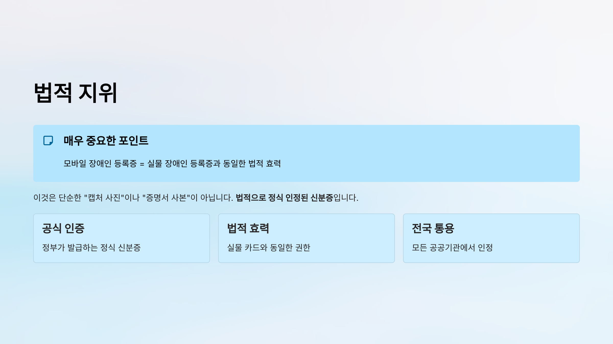이것은 단순한 "캡처 사진"이나 "증명서 사본"이 아닙니다. 법적으로 정식 인정된 신분증입니다.