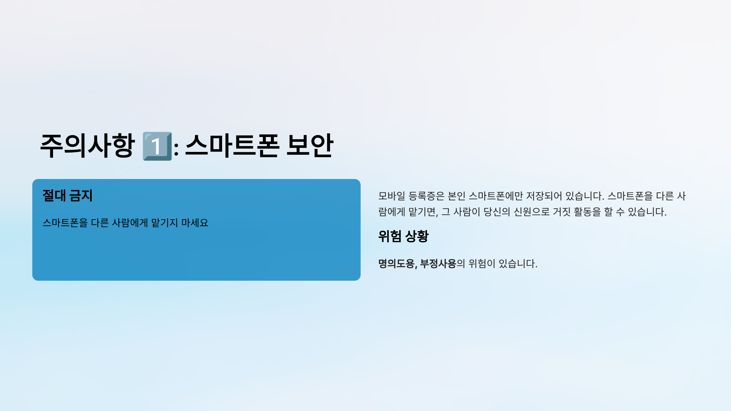 주의사항 1️⃣: 스마트폰을 다른 사람에게 맡기지 마세요