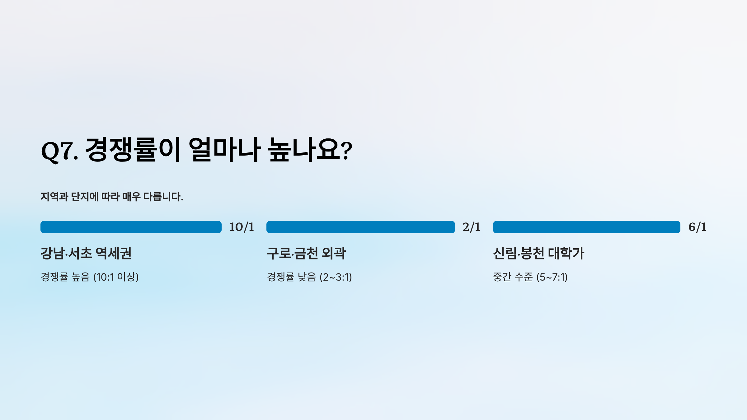 - 신림·봉천 대학가: 중간 수준 (5~7:1)