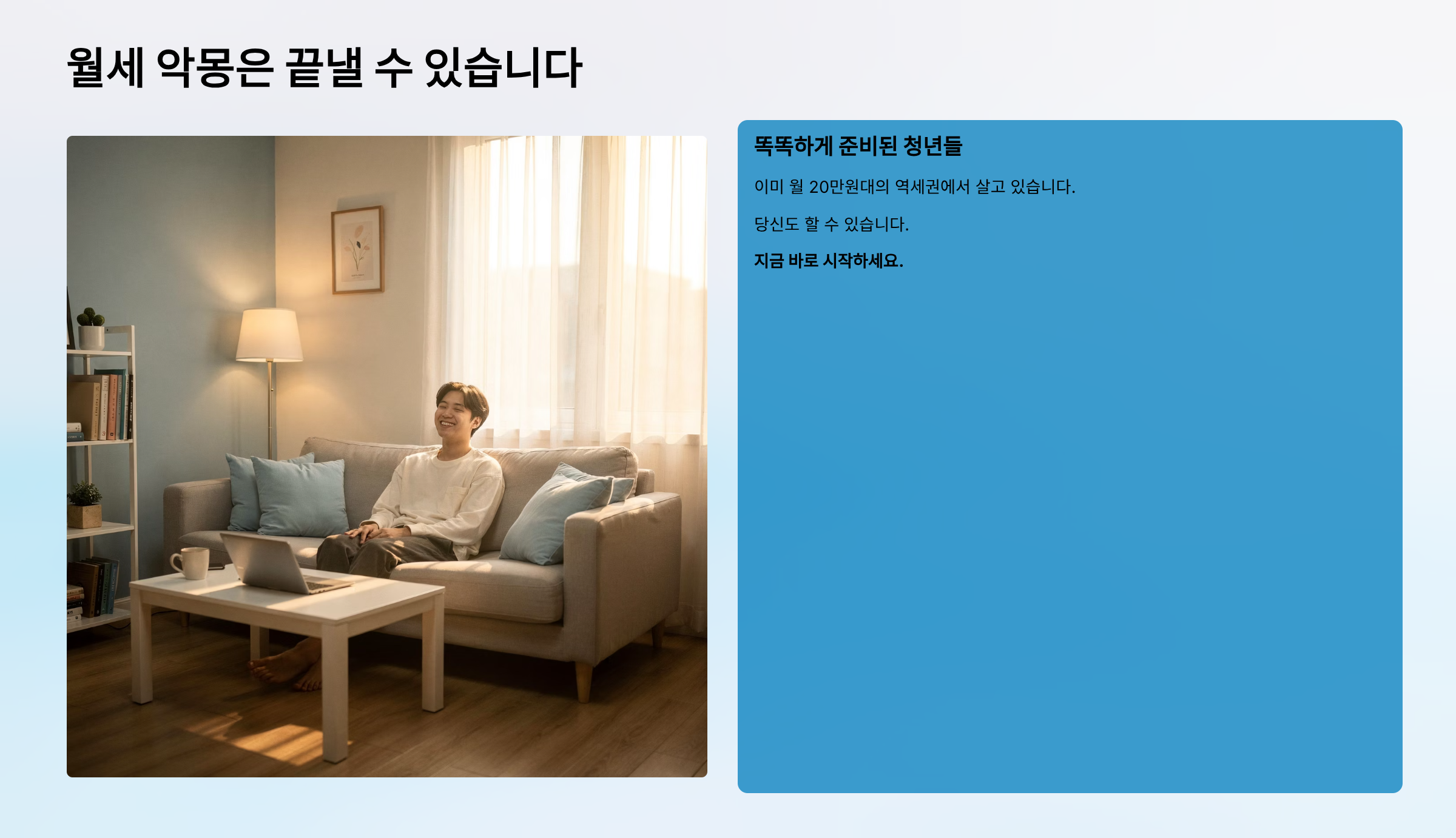 서울에서의 "월세 악몽"은 끝낼 수 있습니다. 똑똑하게 준비된 청년들이 이미 월 20만원대의 역세권에서 살고 있습니다.