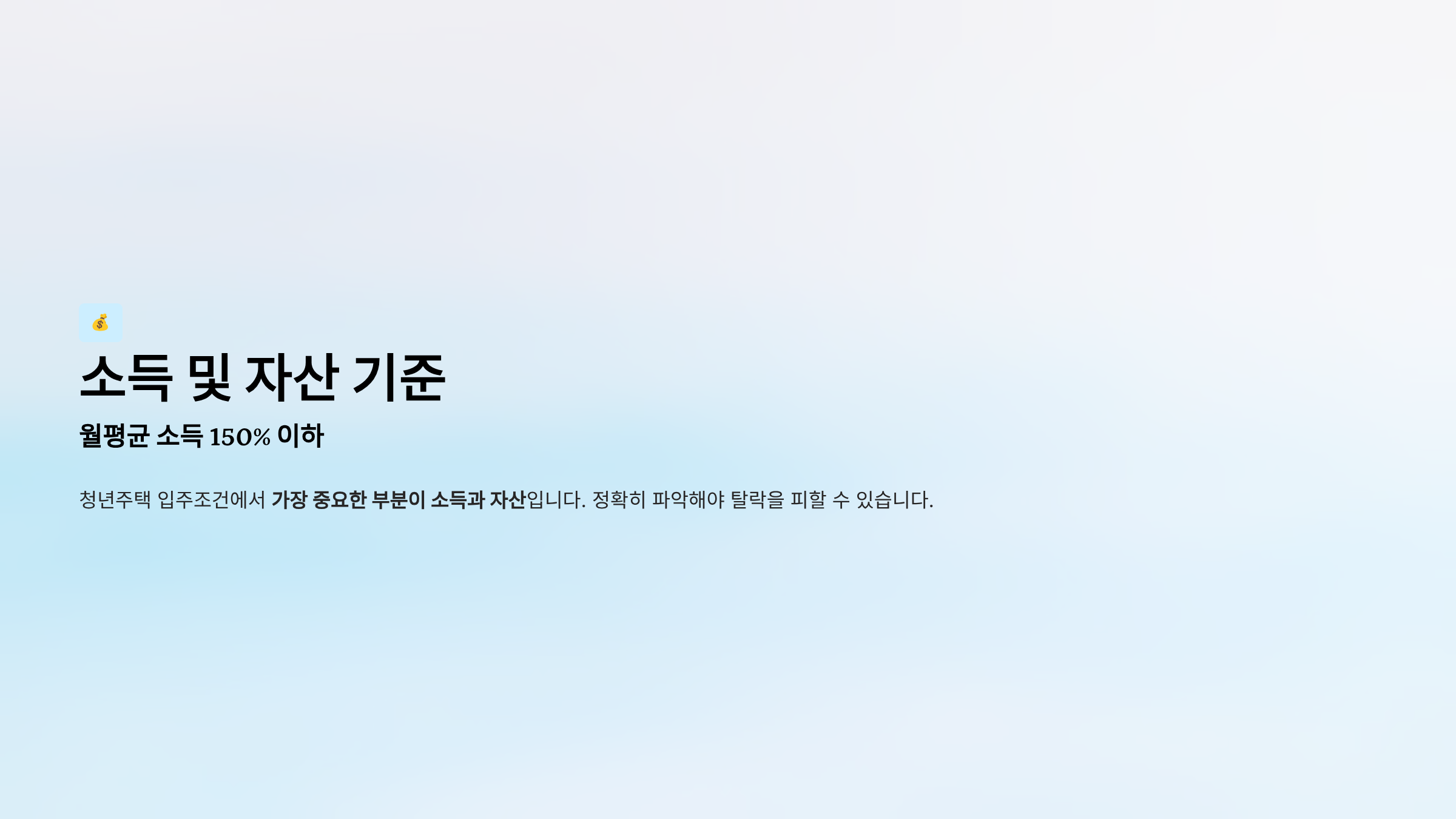 청년주택 입주조건에서 가장 중요한 부분이 소득과 자산입니다. 정확히 파악해야 탈락을 피할 수 있습니다.