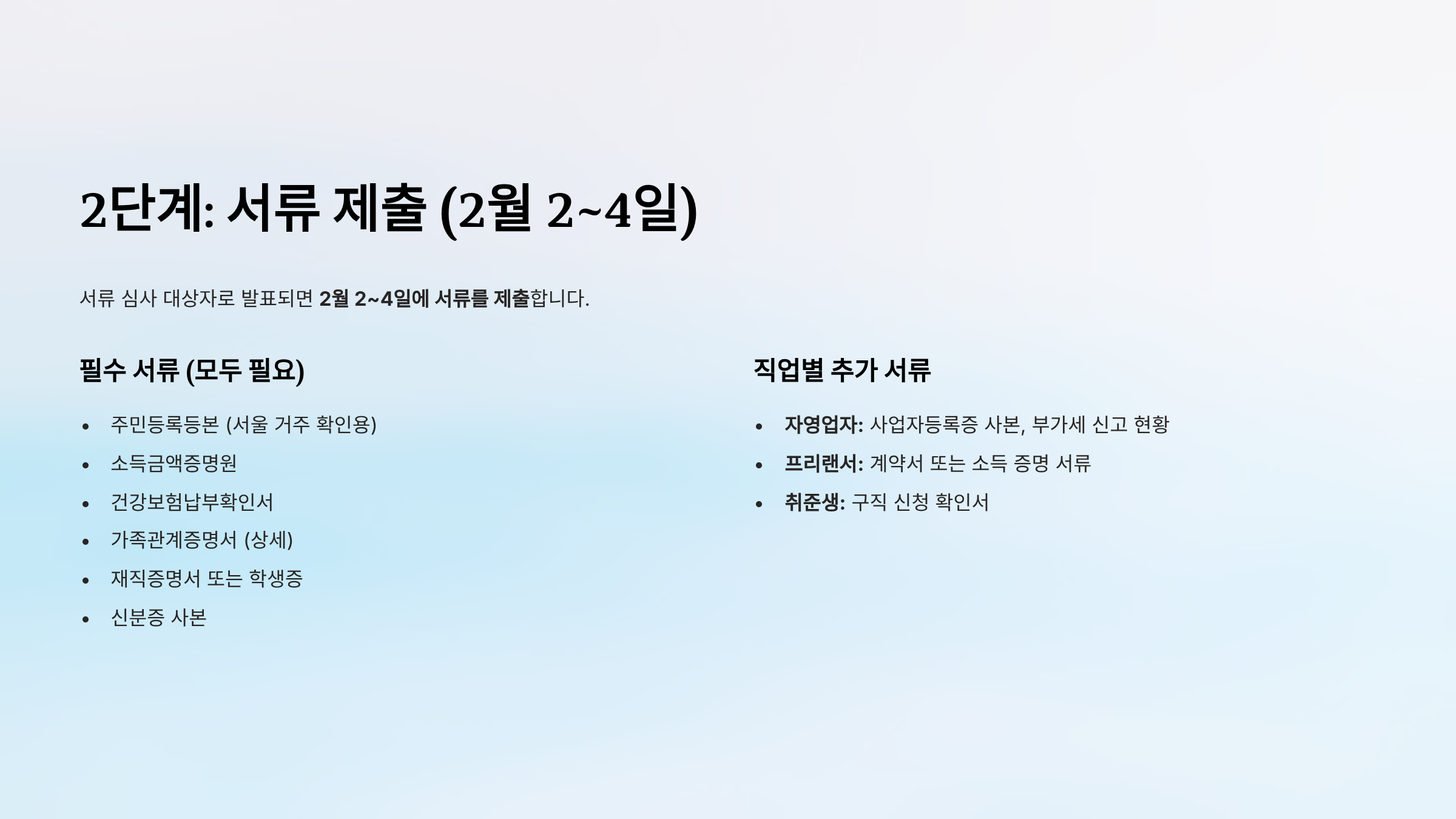 2단계: 서류 제출 (2월 2~4일)
