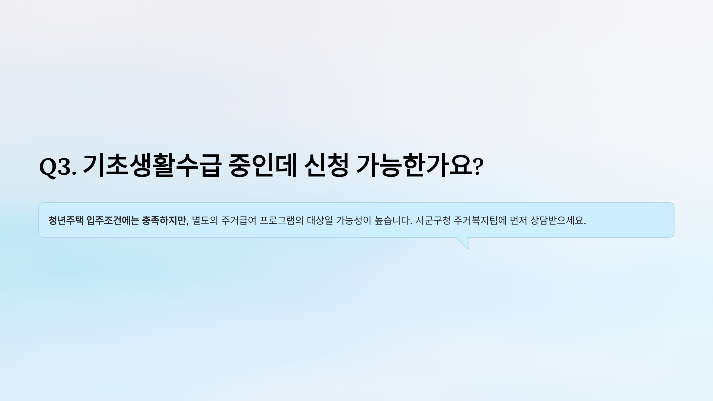 Q3. 기초생활수급 중인데 신청 가능한가요?