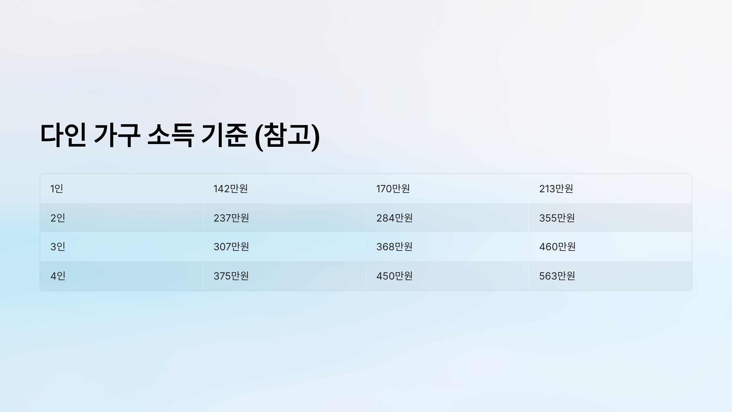 | 4인 | 375만원 | 450만원 | 563만원 |
