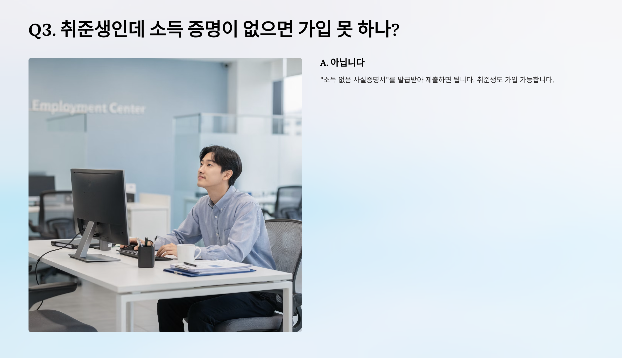 Q3. 취준생인데 소득 증명이 없으면 가입 못 하나?