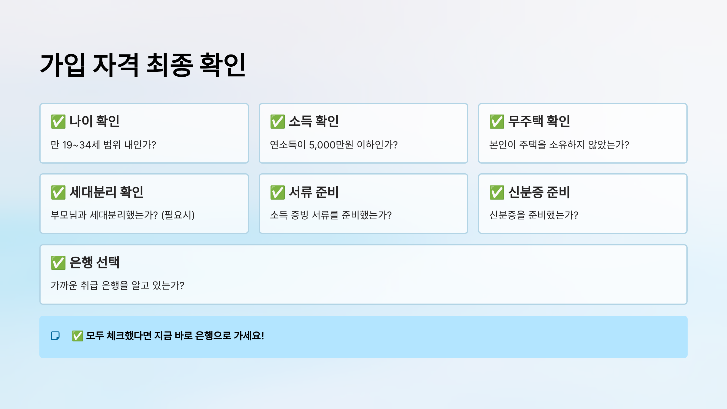 ✅ 모두 체크했다면 지금 바로 은행으로 가세요!