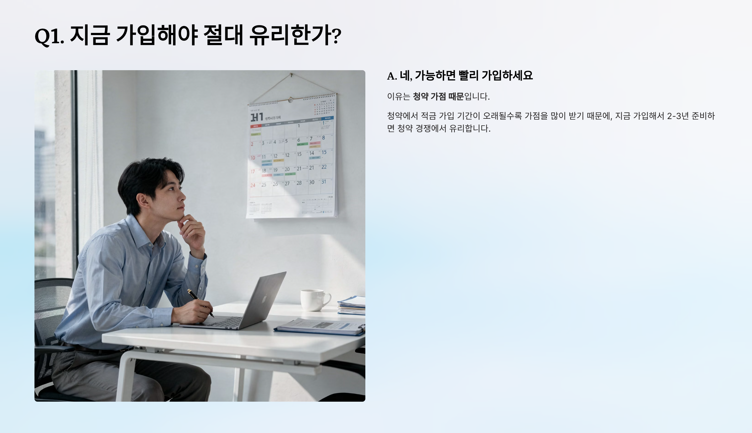 Q1. 지금 가입해야 절대 유리한가?