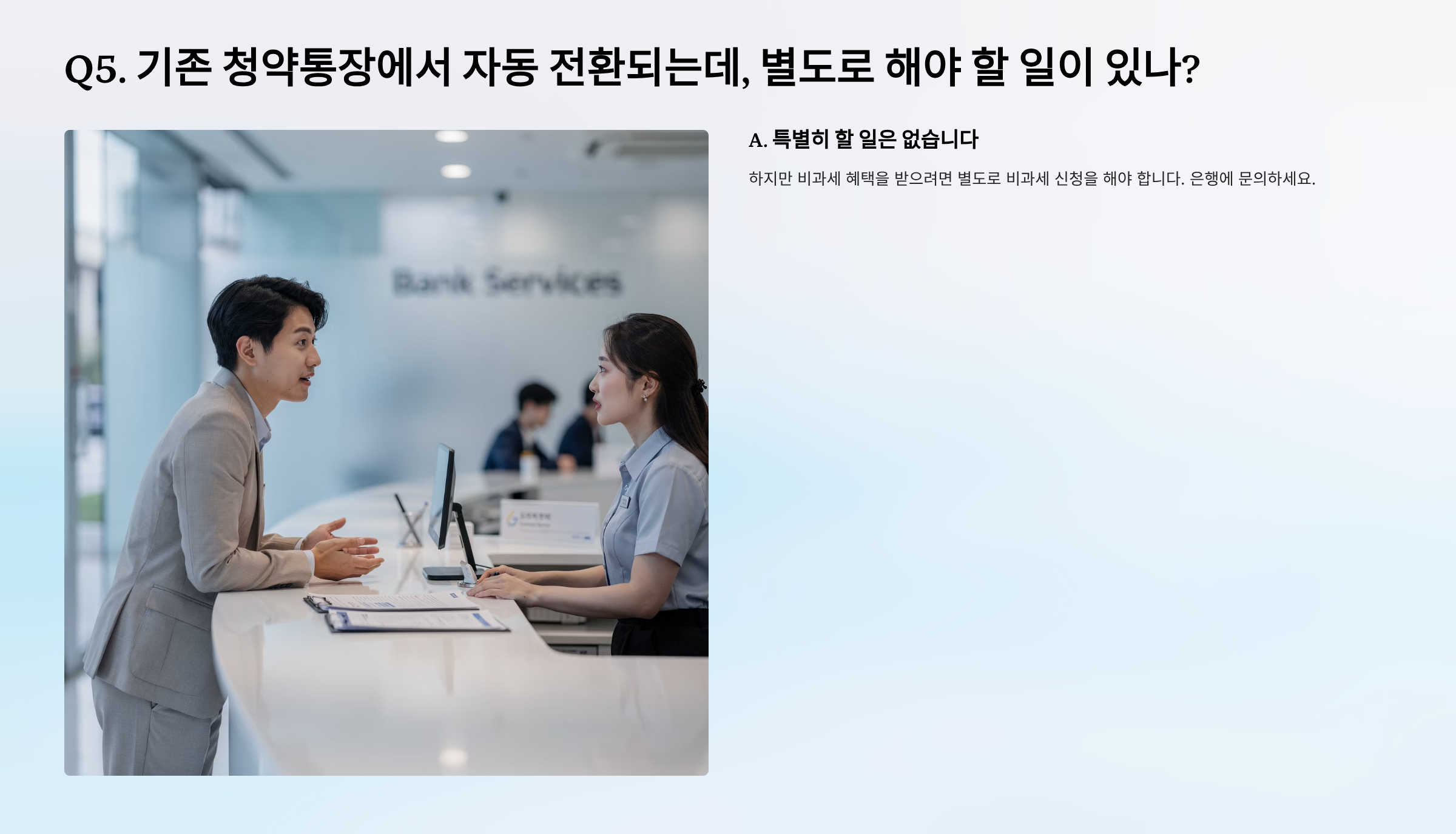 Q5. 기존 청약통장에서 자동 전환되는데, 별도로 해야 할 일이 있나?