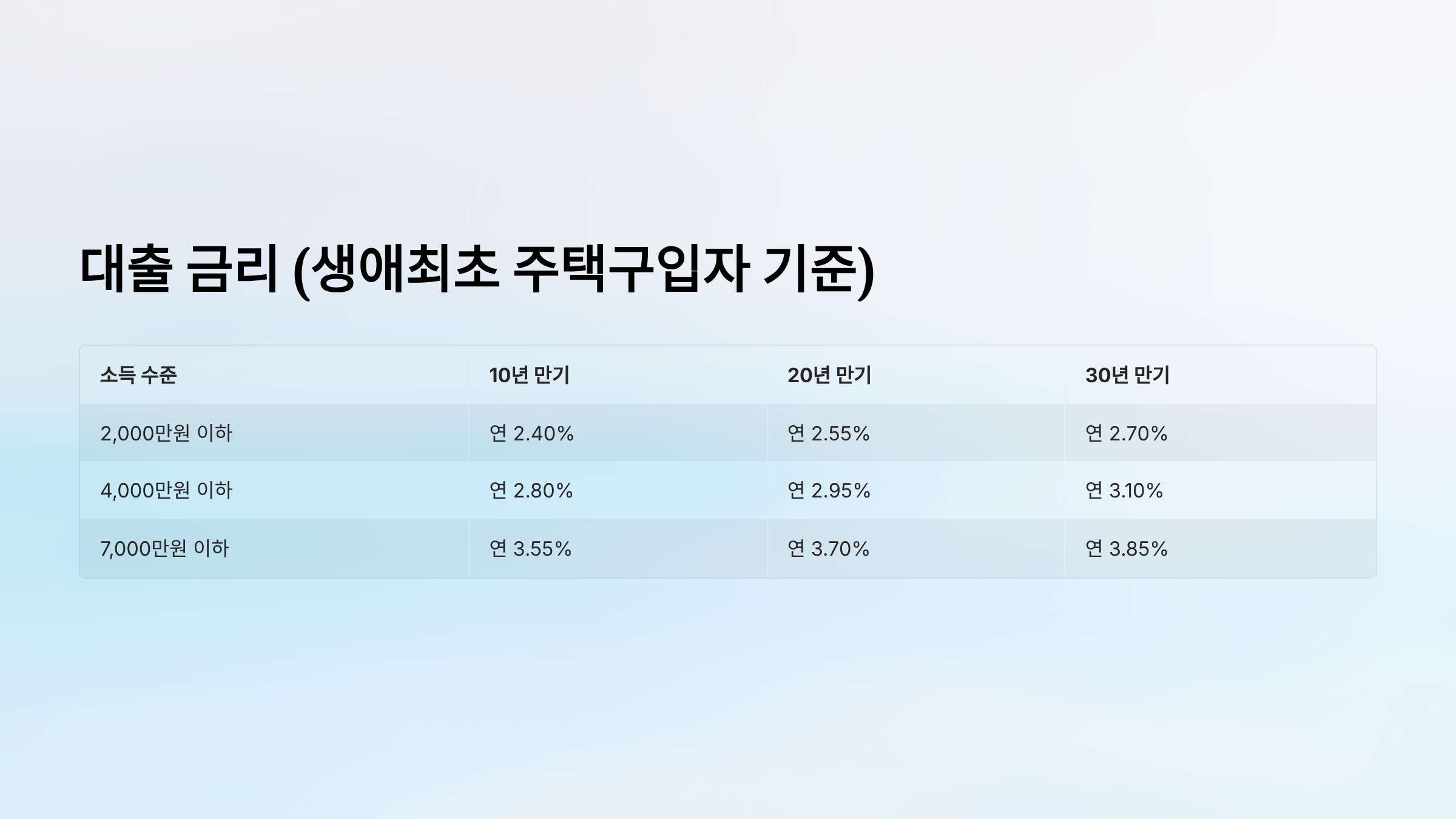 대출 금리 (생애최초 주택구입자 기준)