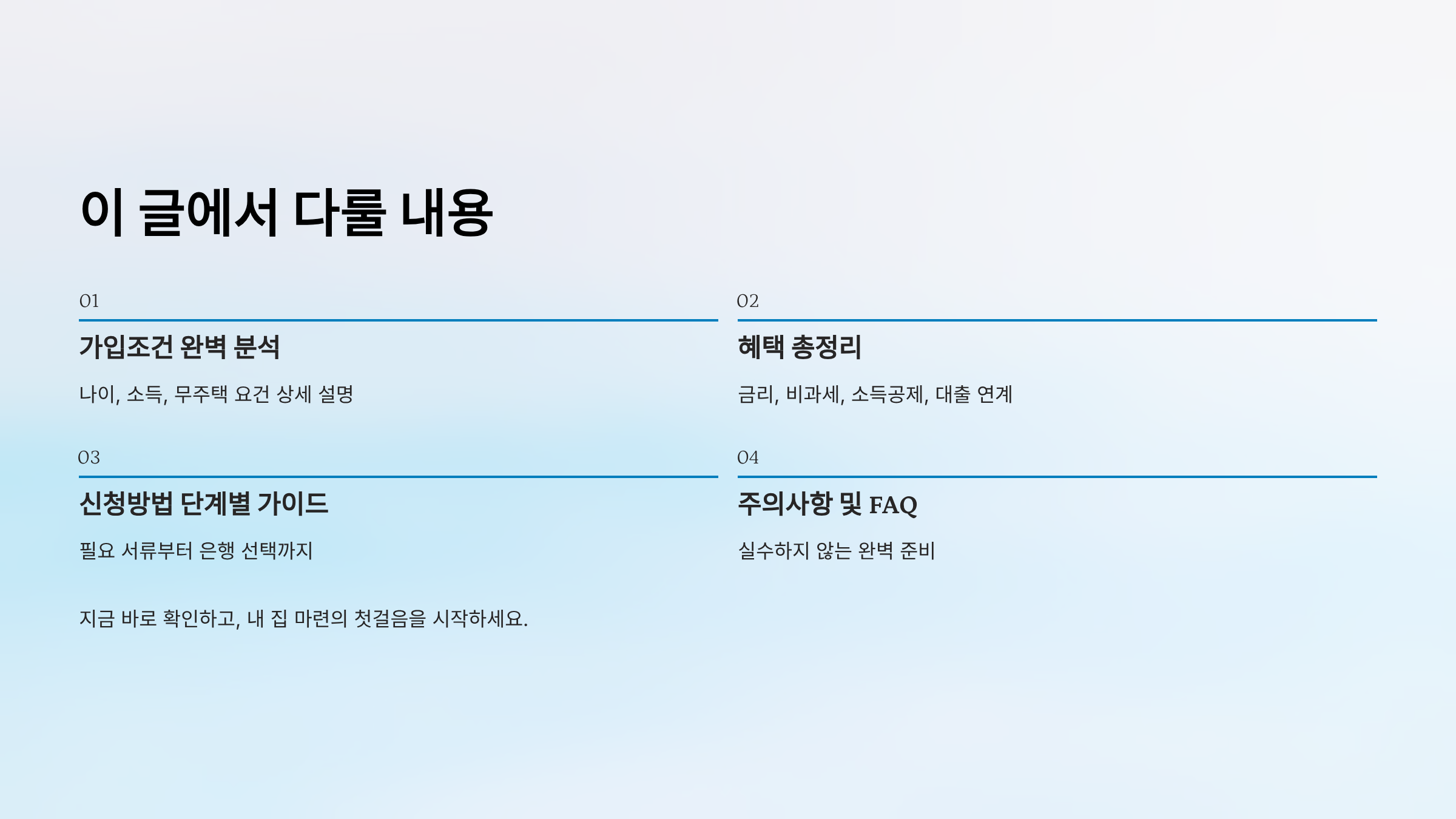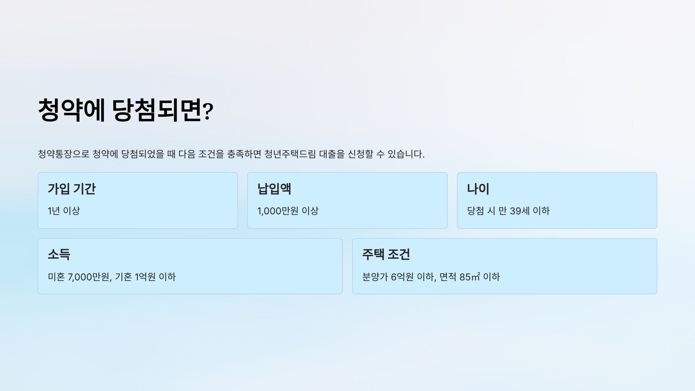 | 주택 조건 | 분양가 6억원 이하, 면적 85㎡ 이하 |