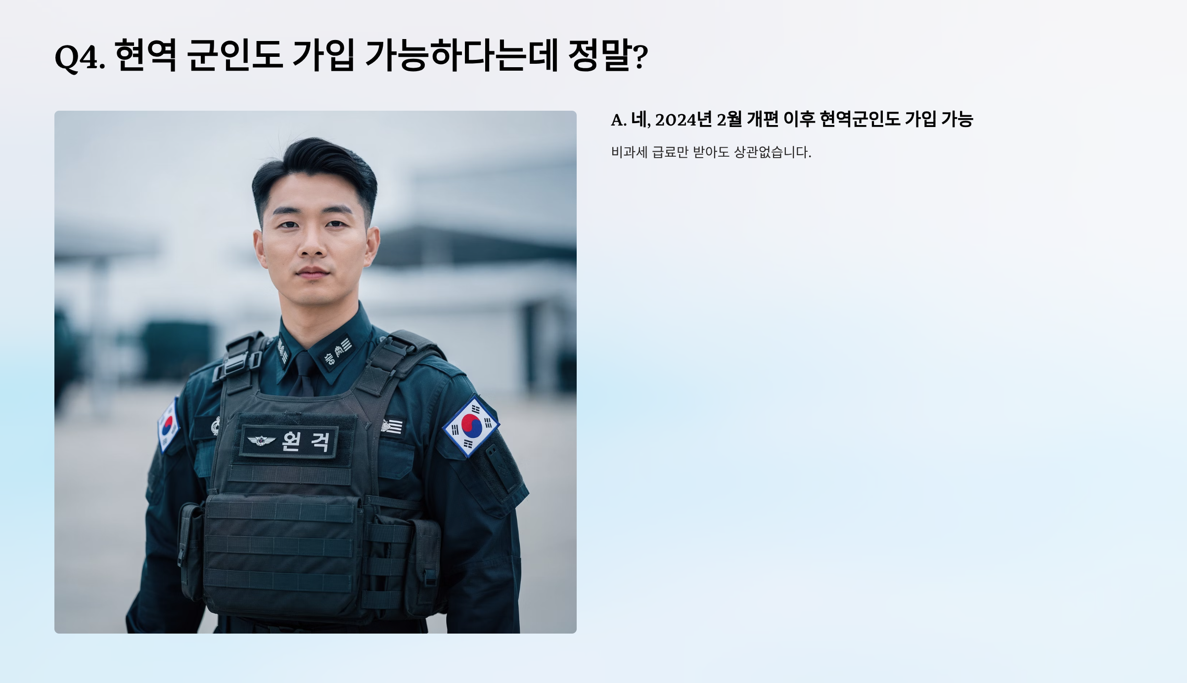 Q4. 현역 군인도 가입 가능하다는데 정말?
