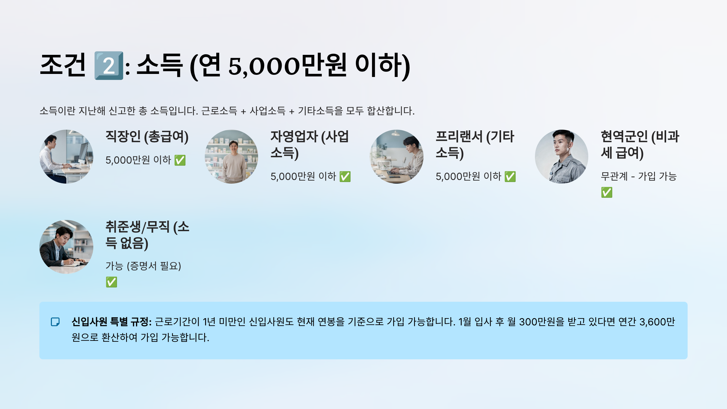 조건 2️⃣: 소득 (연 5,000만원 이하)