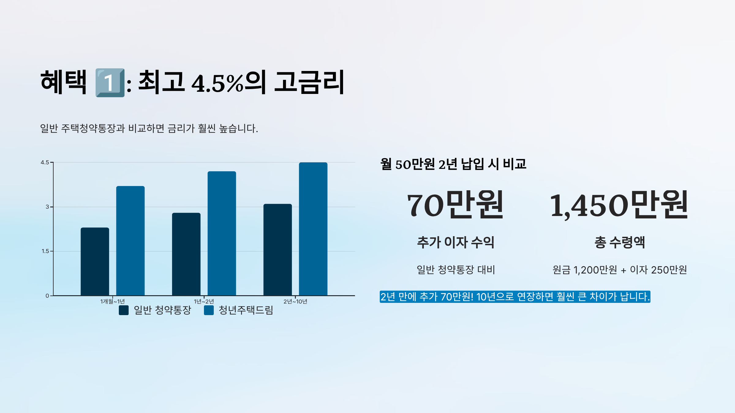 일반 주택청약통장과 비교하면 금리가 훨씬 높습니다.